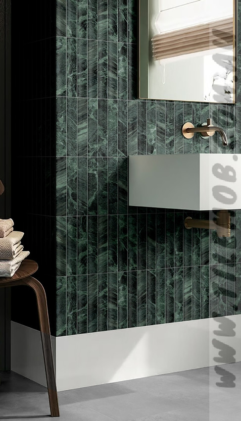GREEN SATIN MARBLE LOOK CONCAVE SUBWAY TILE (50x300mm)