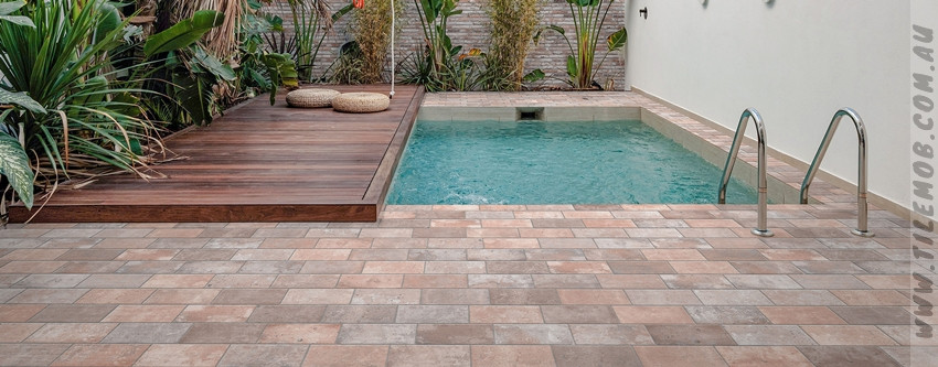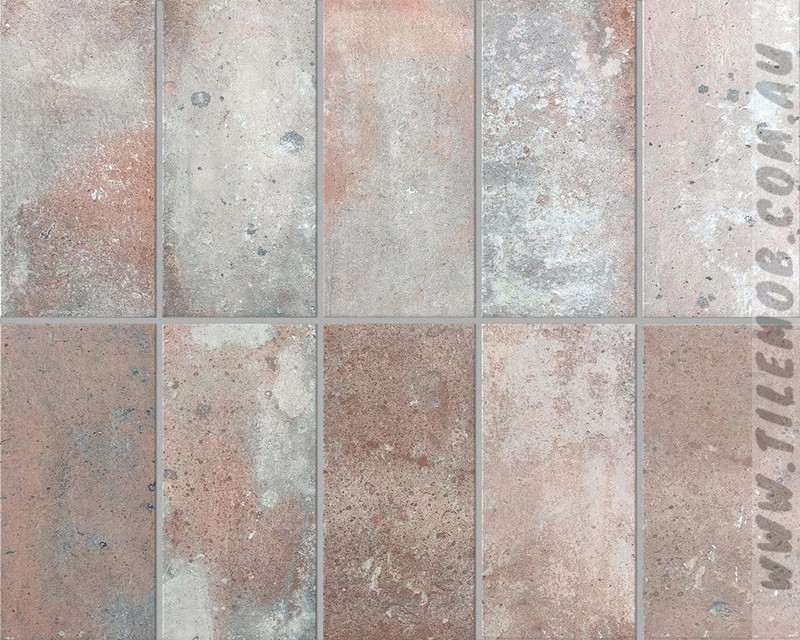 PINK GREY MIX GRIP BRICK SHAPED TILE (125x250mm)